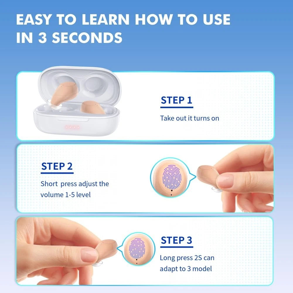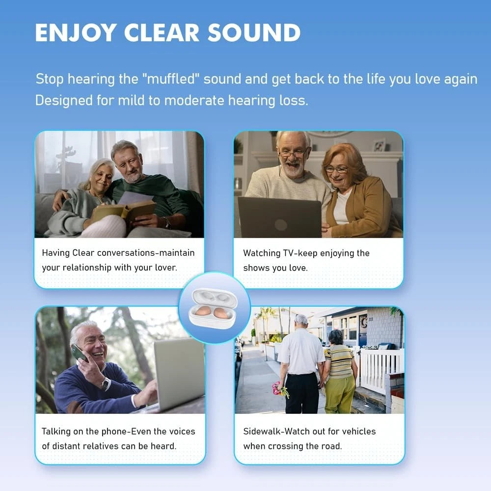 Rechargeable digital invisible in-ear hearing amplifiers that discreetly enhance sound clarity and voice for everyday listening.