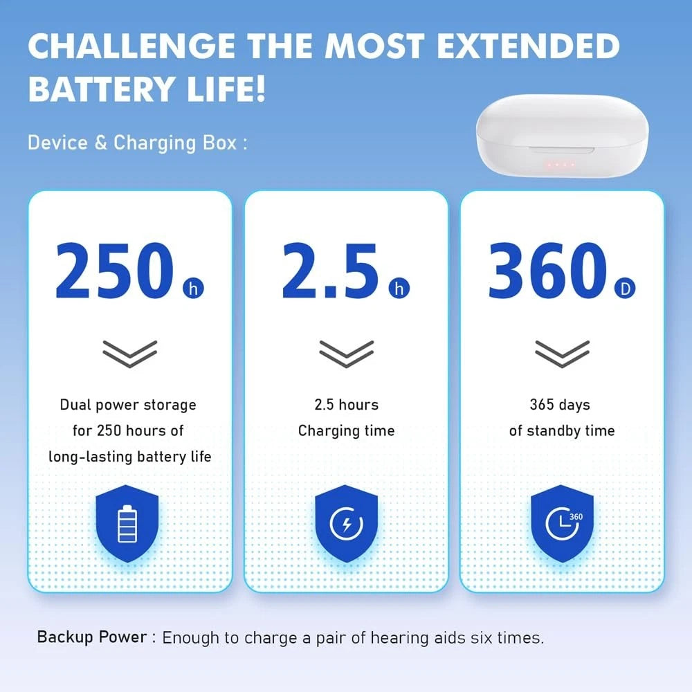 • 2 × Rechargeable digital in-ear hearing amplifiers (left & right)