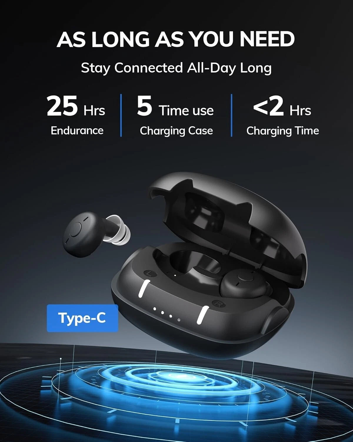 Compact, rechargeable in-ear digital hearing aids designed to discreetly amplify sound and improve hearing clarity for everyday use.