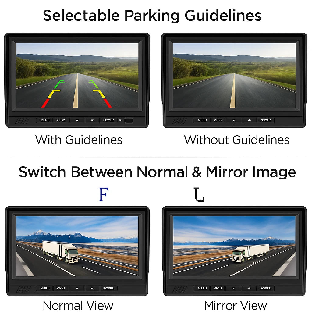 • 7″ HD monitor with 1080P resolution for clear rear view feedback.